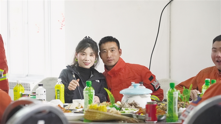 在大隊里,孫再藏與妻子一起包餃子、貼春聯(lián)、看春晚,和消防員們共同歡度佳節(jié)。除夕夜,孫再藏和妻子手挽著手,在操場上漫步。妻子抬頭看著丈夫,眼中充滿了驕傲和溫柔。她說:“你們過年還挺熱鬧的,好好站崗值班,家里不用擔心,有我呢?!?/p>