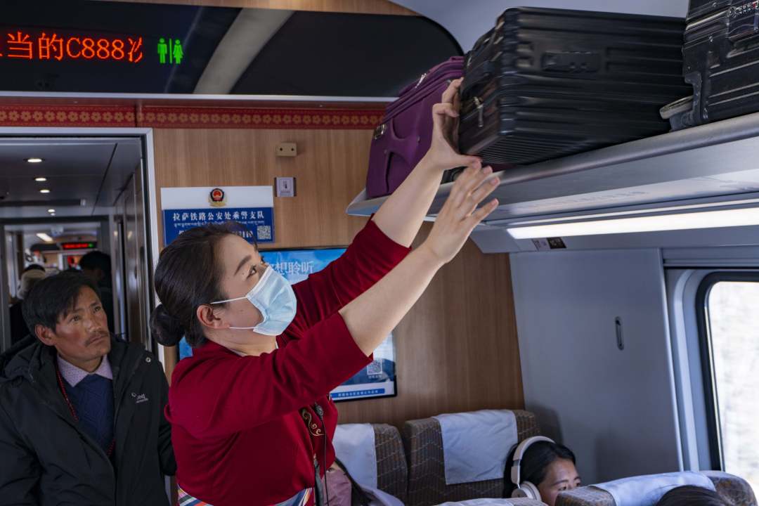 隨著春節(jié)及藏歷新年假期進(jìn)入尾聲,西藏春運(yùn)迎來返程高峰。2月17日,記者跟隨來到了青藏鐵路拉薩至日喀則的列車上,同列車員一道感受春運(yùn)高峰的忙碌。