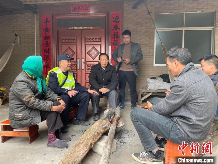 袁倫在與村民拉家常的同時(shí)開展普法宣傳。黃巍 攝