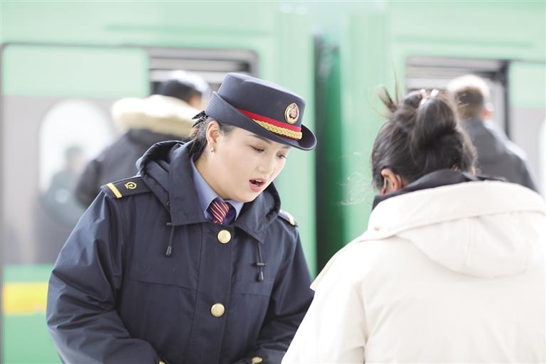一個(gè)人帶領(lǐng)十多人的班組,將工作安排得井井有條,白瑪拉增小小的身板蘊(yùn)藏著無窮的力量。在結(jié)束一天的忙碌后,白瑪拉增感慨道:“今年是我參加工作后的第10個(gè)春運(yùn),也是拉日鐵路第10個(gè)春運(yùn)。如今,西藏的鐵路網(wǎng)越來越密,我們的服務(wù)內(nèi)容也越來越多元化,更加注重旅客的需求和服務(wù)質(zhì)量的提升。這10年里,我和日喀則站相互陪伴成長(zhǎng),雖然今年過年沒能和家人團(tuán)聚,但旅客一句簡(jiǎn)單的謝謝都會(huì)讓我元?dú)鉂M滿,我會(huì)帶著這份堅(jiān)定和熱情,繼續(xù)服務(wù)好每一名旅客?!?/p>