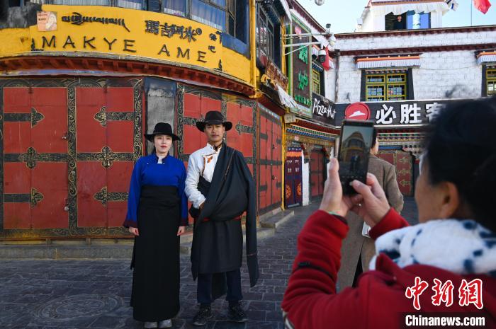 圖為大年初一,游客在八廓古城“網(wǎng)紅”地標拍照打卡。趙朗 攝