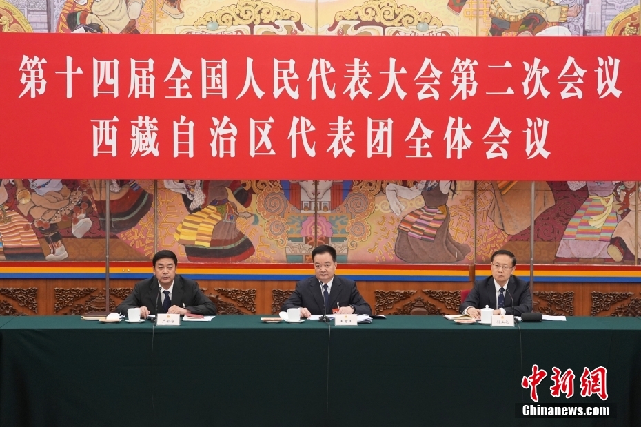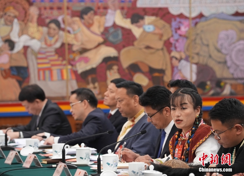 3月6日,出席十四屆全國人大二次會議的西藏代表團在北京人民大會堂西藏廳舉行開放團組會議,審議政府工作報告并回答記者提問。