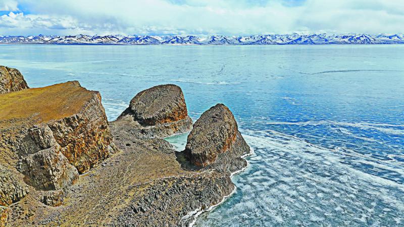 圖為冬季納木錯(cuò)。(航拍圖)記者 趙書(shū)彬 攝