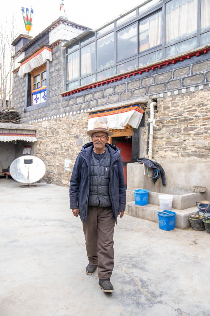 次旦說(shuō),平時(shí)二女兒央金在家照顧他的生活,女婿外出務(wù)工。次旦老人生活閑適,村里一有文藝演出,他就過(guò)去觀看。