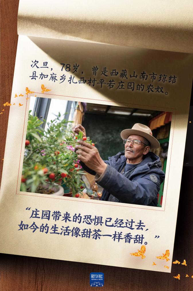 從昏暗羊圈到藏式二層小樓,次旦家的變化天翻地覆。“莊園帶來(lái)的恐懼已經(jīng)過(guò)去,現(xiàn)在兒女都長(zhǎng)大成人,我有養(yǎng)老金、有醫(yī)保,沒有后顧之憂。如今我們的生活像甜茶一樣香甜?!贝蔚┱f(shuō)。(參與采寫:旦增尼瑪曲珠)