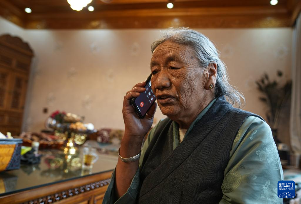 格桑玉珍用手機(jī)與好友通話(huà)(4月3日攝)。新華社記者 晉美多吉 攝