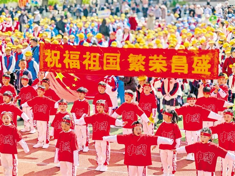 拉薩市第一小學(xué)學(xué)生在運動會上表演節(jié)目。朱穎 攝