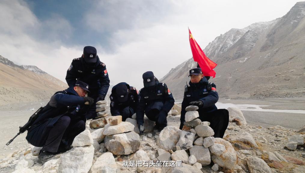 又經(jīng)過4個(gè)小時(shí)的跋涉,巡邏隊(duì)最終抵達(dá)本次巡邏的終點(diǎn)。每次到巡邏任務(wù)結(jié)束,都會(huì)在這里留下一個(gè)小石頭,并許下一個(gè)愿望,祝祖國(guó)繁榮昌盛,也祝自己心想事成。