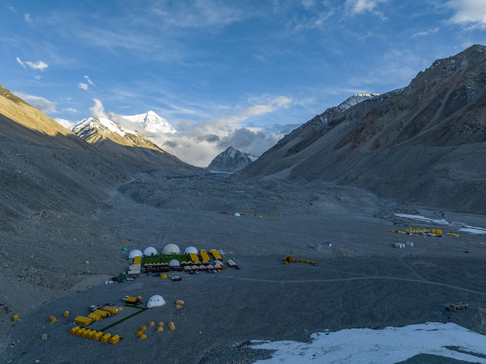 珠峰登山大本營(5月21日攝,無人機照片)。新華社記者 孫非 攝