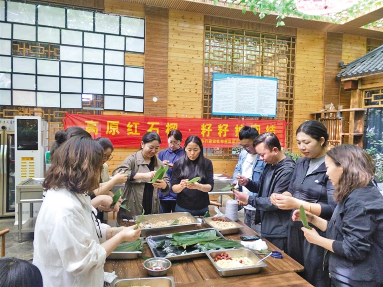 日喀則市行政審批和便民服務(wù)局組織開展共聚“民族餐”活動,各族干部在一起包粽子。