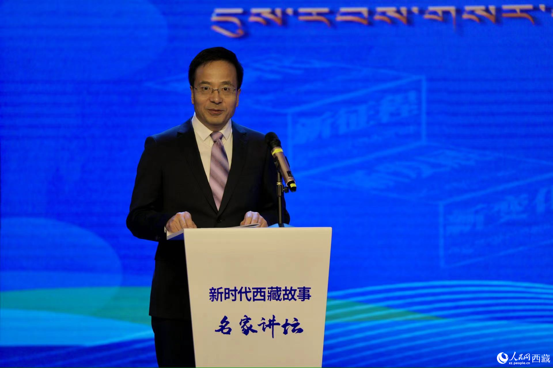 西藏自治區(qū)黨委宣傳部副部長,西藏自治區(qū)社會(huì)科學(xué)院黨組書記,中央和國家機(jī)關(guān)第七批、第八批援藏干部孫向軍作主題演講。人民網(wǎng)記者 次仁羅布攝