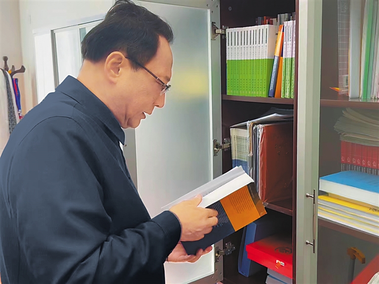圖為尼瑪扎西在查閱藏文信息系統(tǒng)技術資料。記者 索朗群培 攝