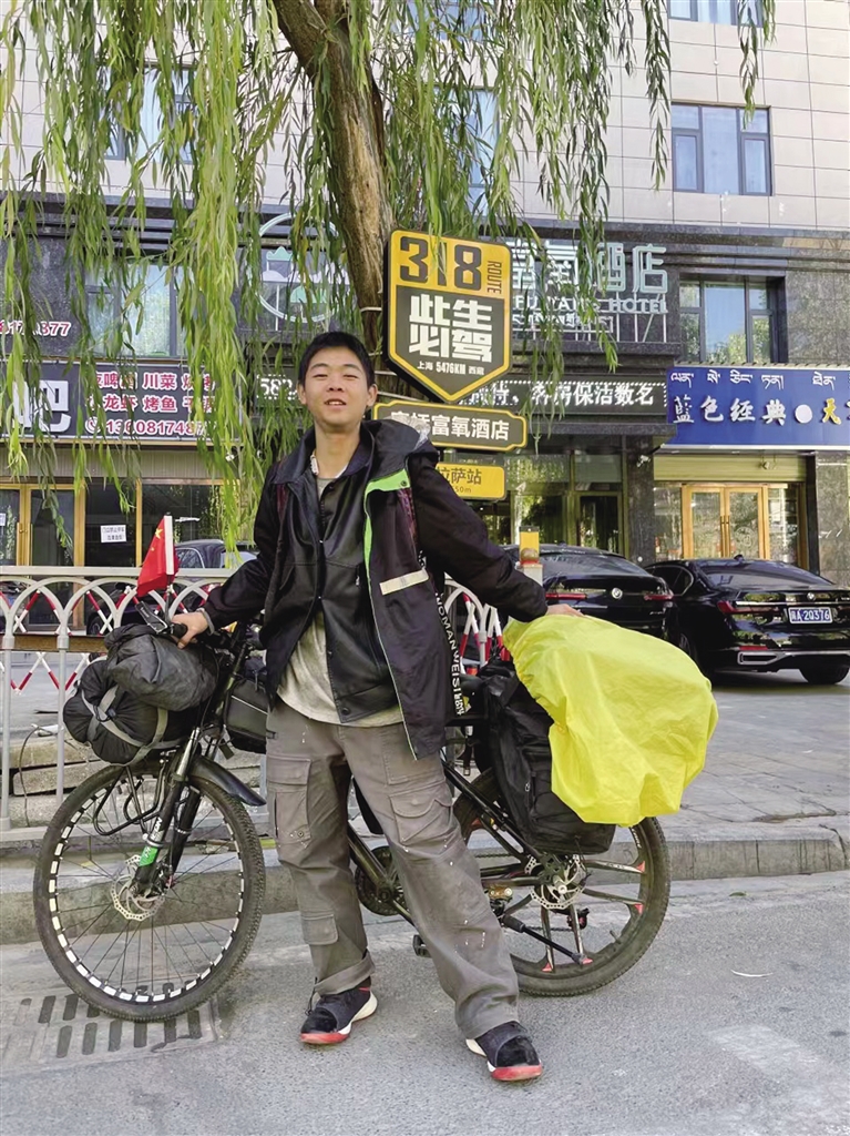 張先生騎自行車進(jìn)藏。圖由受訪者提供