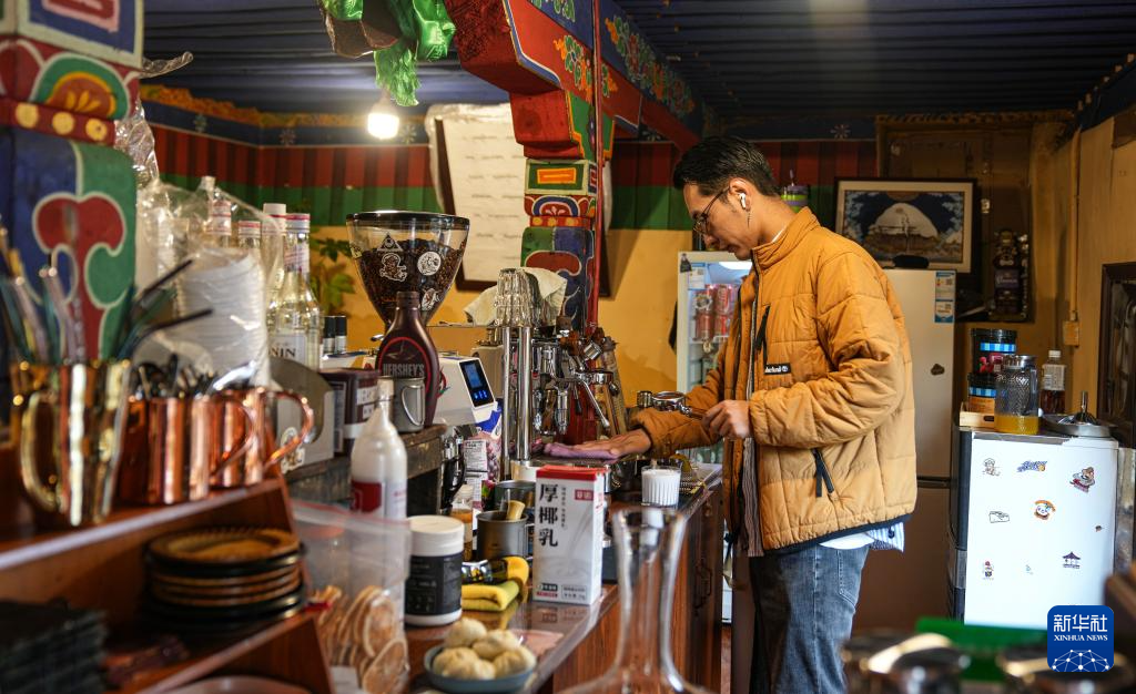 咖啡師扎西多吉在制作咖啡(7月5日攝)。新華社發(fā)(格桑雍珍 攝)