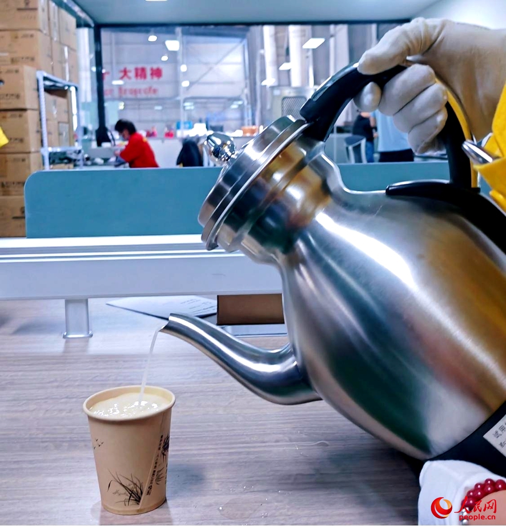 60秒做好一杯酥油茶。 人民網(wǎng) 李海霞攝