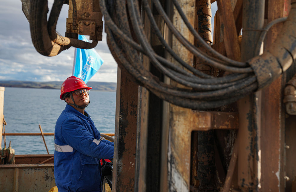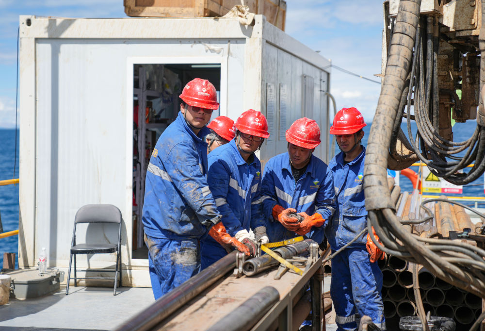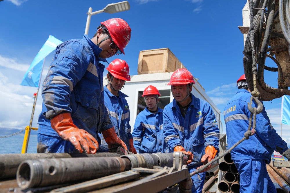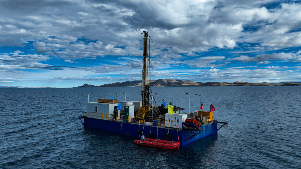 在海拔超過4700米的西藏納木錯中心湖區(qū),21名來自五湖四海的鉆探專業(yè)技術(shù)人員,全天24小時輪班奮戰(zhàn)在面積僅200平方米的水上鉆探平臺上,協(xié)助第二次青藏科考科研人員提取湖泊巖芯樣品,這些樣本如同寶貝一樣,封存著青藏高原納木錯地區(qū)百萬年來的環(huán)境氣候變化信息。 擔任這次湖泊巖芯鉆探任務的是四川資源集團華鋒鉆探隊。他們從5月31日入駐科考營地、6月6日鉆取第一批湖泊巖芯樣品以來一直奮戰(zhàn)至今。這群平均年齡31歲的鉆探隊員常年工作在高海拔地區(qū),有著豐富的鉆探經(jīng)驗,此次鉆探是他們第一次進行高海拔湖泊鉆探。目前納木錯鉆探深度突破400米,達到國內(nèi)高海拔深水大湖的鉆探新紀錄。這些鉆探隊員在見證奇跡,也在創(chuàng)造歷史。