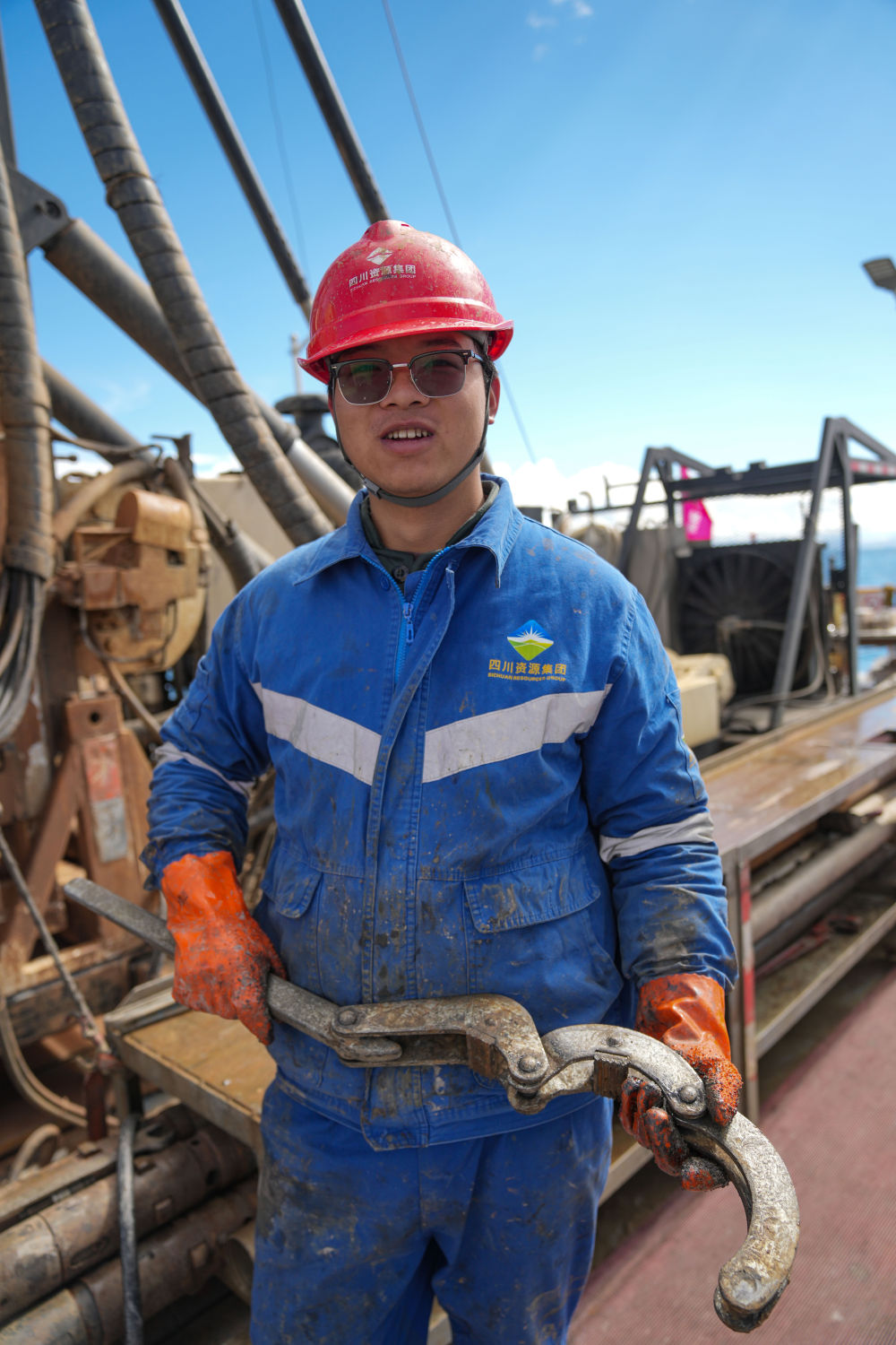 7月11日,操作班長彭銀平在操作鉆機,準備進尺作業(yè)。新華社記者 晉美多吉 攝