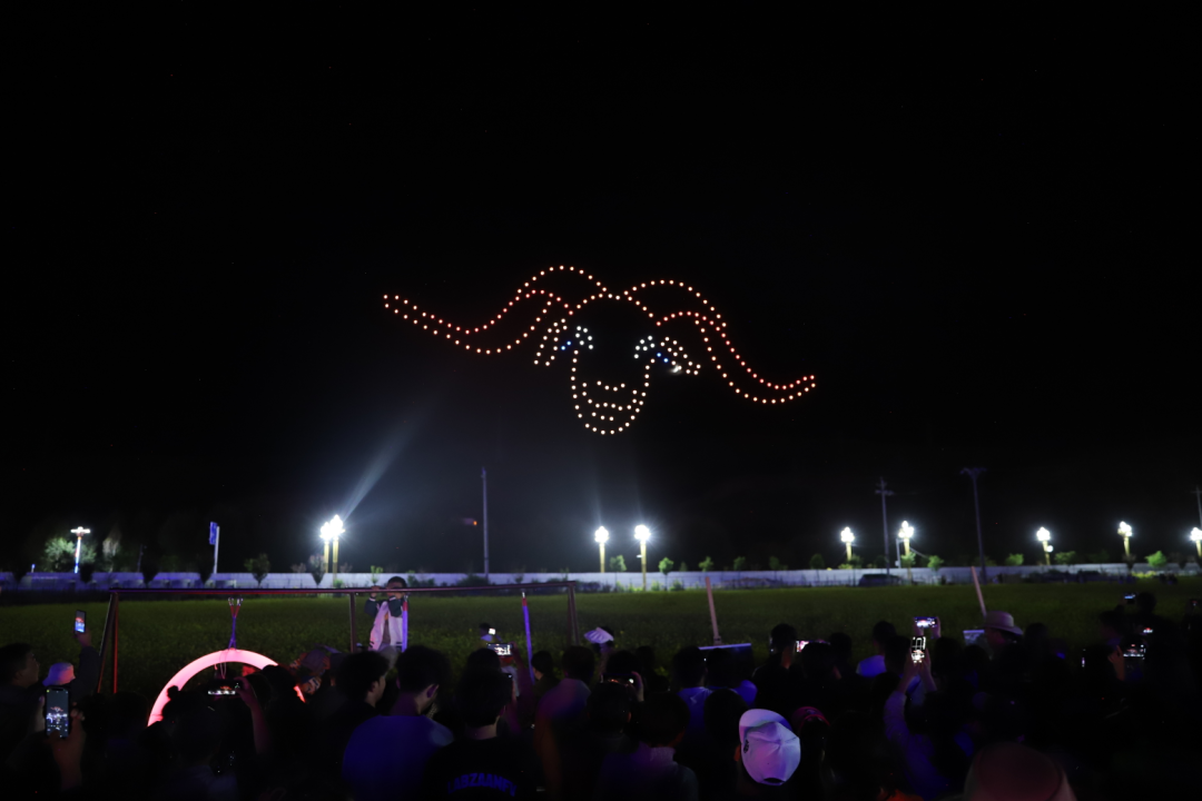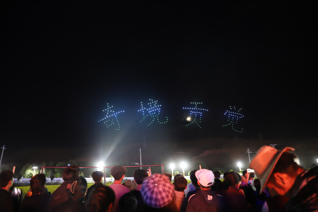 伴隨著篝火晚會的進行,200架無人機騰空而起,通過傳奇昌都、團結(jié)發(fā)展、產(chǎn)業(yè)興旺3個篇章舞動出一場流光溢彩的視覺盛宴,以極具時尚先鋒的方式向大家推介傳奇昌都,推介奇境貢覺。