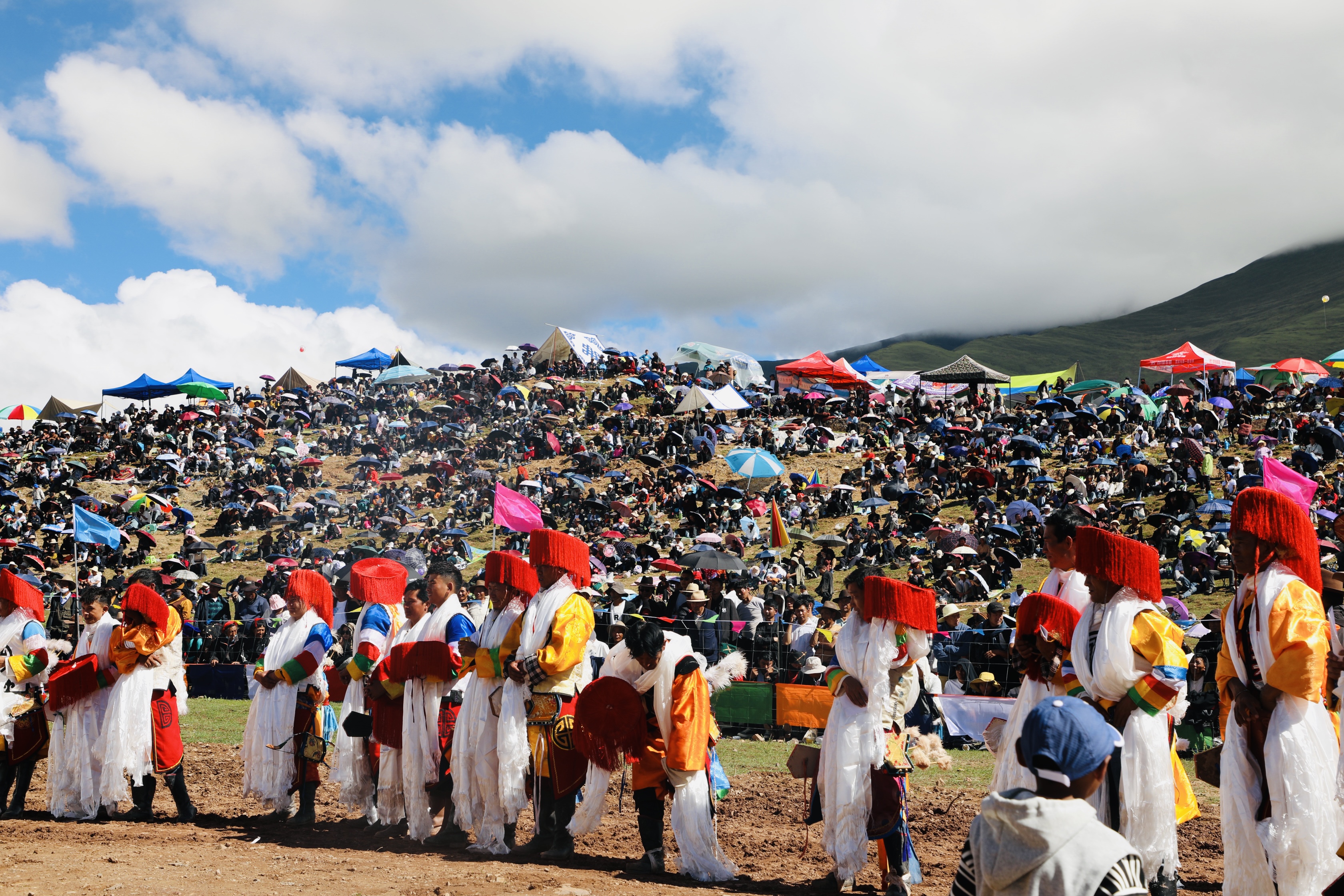 林周,藏語(yǔ)譯為“天然形成的沃土”,被譽(yù)為“拉薩的后花園”、“拉薩的糧倉(cāng)”,天然肥沃的土壤把林周縣分為兩種特殊的地貌,草原和耕地,養(yǎng)育了眾多的林周人。圖為林周縣群眾慶?!巴?jié)”。