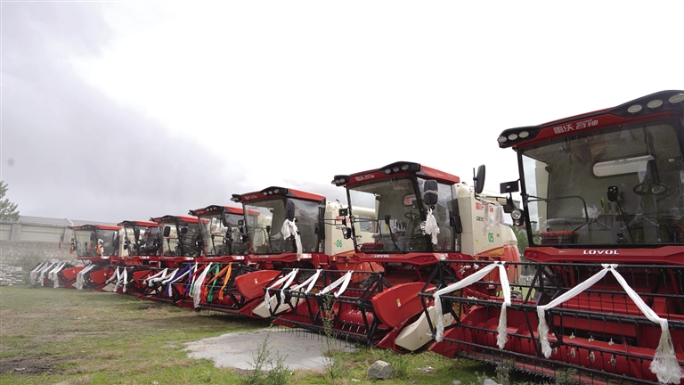 在秋意漸濃的金秋時(shí)節(jié),山南市滴新社區(qū)迎來了一場農(nóng)業(yè)現(xiàn)代化的大升級。8月14日,隨著一聲聲轟鳴,十臺嶄新的聯(lián)合收割機(jī)整齊排列在社區(qū)廣場上,標(biāo)志著滴新社區(qū)在提升農(nóng)業(yè)生產(chǎn)效率、促進(jìn)農(nóng)業(yè)高質(zhì)量發(fā)展的道路上邁出了堅(jiān)實(shí)的一步。此次購置的農(nóng)機(jī)具投入資金高達(dá)220萬元,享受到了政府超過四成的政策性補(bǔ)貼,為即將到來的秋收注入了強(qiáng)勁動(dòng)力,也為鄉(xiāng)村振興戰(zhàn)略的實(shí)施增添了濃墨重彩的一筆。