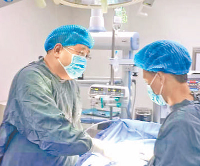 侯坤(左)正在開展手術(shù)。旦增歐珠攝