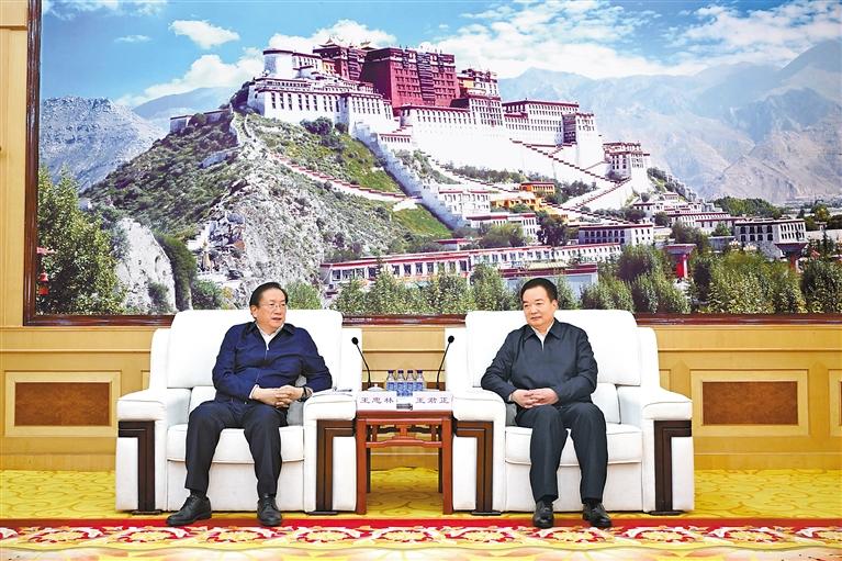王君正代表自治區(qū)黨委、政府對(duì)湖北省黨政代表團(tuán)來藏考察表示歡迎。他說,在深入貫徹落實(shí)黨的二十屆三中全會(huì)和第四次對(duì)口支援西藏工作會(huì)議精神之際,湖北省黨政代表團(tuán)來藏考察、推進(jìn)援藏工作,充分體現(xiàn)了湖北省委、省政府貫徹落實(shí)習(xí)近平總書記關(guān)于西藏工作的重要指示和新時(shí)代黨的治藏方略的自覺性和堅(jiān)定性、責(zé)任感和使命感。湖北作為中部大省,近年來深入貫徹落實(shí)習(xí)近平總書記關(guān)于湖北工作的重要講話、重要指示批示精神和黨中央決策部署,圍繞“五個(gè)功能定位”,推動(dòng)經(jīng)濟(jì)社會(huì)快速發(fā)展,為中國式現(xiàn)代化建設(shè)作出了積極貢獻(xiàn)。西藏工作在黨和國家工作大局中具有十分重要的戰(zhàn)略地位。自治區(qū)黨委不折不扣貫徹落實(shí)習(xí)近平總書記為西藏明確的“穩(wěn)定、發(fā)展、生態(tài)、強(qiáng)邊”四件大事,推動(dòng)各項(xiàng)事業(yè)不斷取得新成效,呈現(xiàn)出一派欣欣向榮的良好景象。今年是全國對(duì)口支援西藏30周年,30年來湖北省委、省政府始終站在黨和國家戰(zhàn)略全局的高度,認(rèn)真貫徹落實(shí)黨中央關(guān)于援藏工作的決策部署,緊扣受援地需求推進(jìn)各項(xiàng)工作落地落實(shí),為西藏長治久安和高質(zhì)量發(fā)展作出了積極貢獻(xiàn),西藏各族人民感恩在心。當(dāng)前,西藏正處于建設(shè)社會(huì)主義現(xiàn)代化的關(guān)鍵時(shí)期,希望兩省區(qū)完整準(zhǔn)確全面貫徹新時(shí)代黨的治藏方略,錨定在國家全局中的戰(zhàn)略地位,勇?lián)姑?、團(tuán)結(jié)奮斗,攜手為強(qiáng)國復(fù)興偉業(yè)作出更大貢獻(xiàn)。深化交流合作,加強(qiáng)發(fā)展戰(zhàn)略對(duì)接,強(qiáng)化特色優(yōu)勢產(chǎn)業(yè)融合發(fā)展,揚(yáng)長避短、優(yōu)勢互補(bǔ),推動(dòng)兩地人民共同富裕。堅(jiān)持以鑄牢中華民族共同體意識(shí)為主線,進(jìn)一步推動(dòng)對(duì)口支援工作走深走實(shí),鞏固教育、醫(yī)療等“組團(tuán)式”援藏成果,激勵(lì)更多優(yōu)秀干部人才參與社會(huì)主義現(xiàn)代化新西藏建設(shè)。
