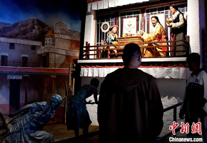 9月14日,觀眾在西藏百萬農(nóng)奴解放紀念館日喀則分館內(nèi)看展覽。中新社記者 李林 攝