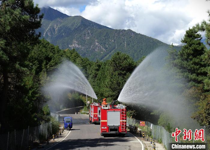 圖為開展灑水增濕作業(yè)。西繞拉翁 攝