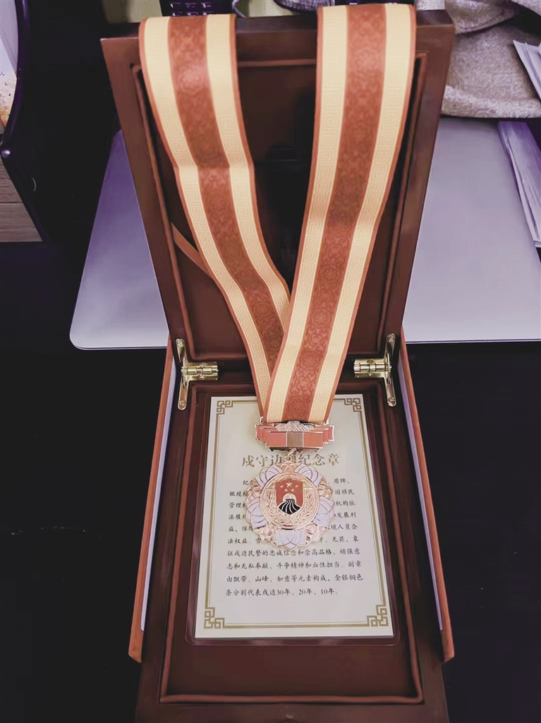 2023年4月17日,拉巴旦增收到了由國家移民管理局頒發(fā)的戍守邊疆銅質(zhì)紀(jì)念章,證書上附有說明:金銀銅色條分別代表戍邊30年、20年、10年。目前,拉巴旦增手握銅質(zhì)紀(jì)念章,但他的目光已望向更遙遠的未來,正如他置頂朋友圈里那句擲地有聲的標(biāo)語:一生只做一件事,我為祖國守邊疆。轉(zhuǎn)眼14載春秋,拉巴旦增以滿腔熱血和不懈堅持,將年少的小小夢想繪成祖國邊陲的輝煌篇章,深深詮釋了“因為熱愛而值得”。