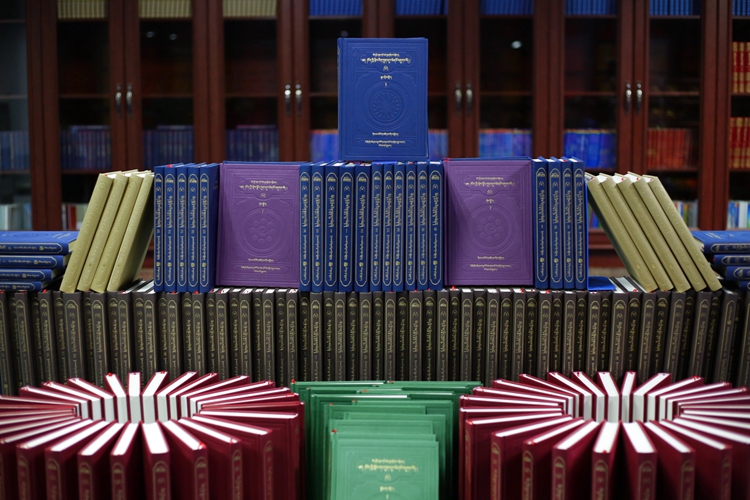 在旦正加看來,民族出版社的成立是藏文化從語言文字層面現(xiàn)代化發(fā)展的開端。新中國成立之前,藏文出版機構(gòu)大都以整理印刻經(jīng)文為主。新中國成立后,隨著人們精神文化需求的不斷提升,藏文出版內(nèi)容從過去單一的佛經(jīng)刻印,發(fā)展到新時期的空前豐富,如《中國人民政治協(xié)商會議共同綱領(lǐng)》《中華人民共和國憲法》等法律文件;《毛澤東文集》《習近平談治國理政》等領(lǐng)袖著作;黨代會和兩會產(chǎn)生的各類時政類圖書;《藏醫(yī)藥大典》《中華大藏經(jīng)》等傳統(tǒng)文化精品圖書;《漢藏對照辭典》《藏漢大辭典》等工具性圖書;還有新時期各類藏學研究著作等等。