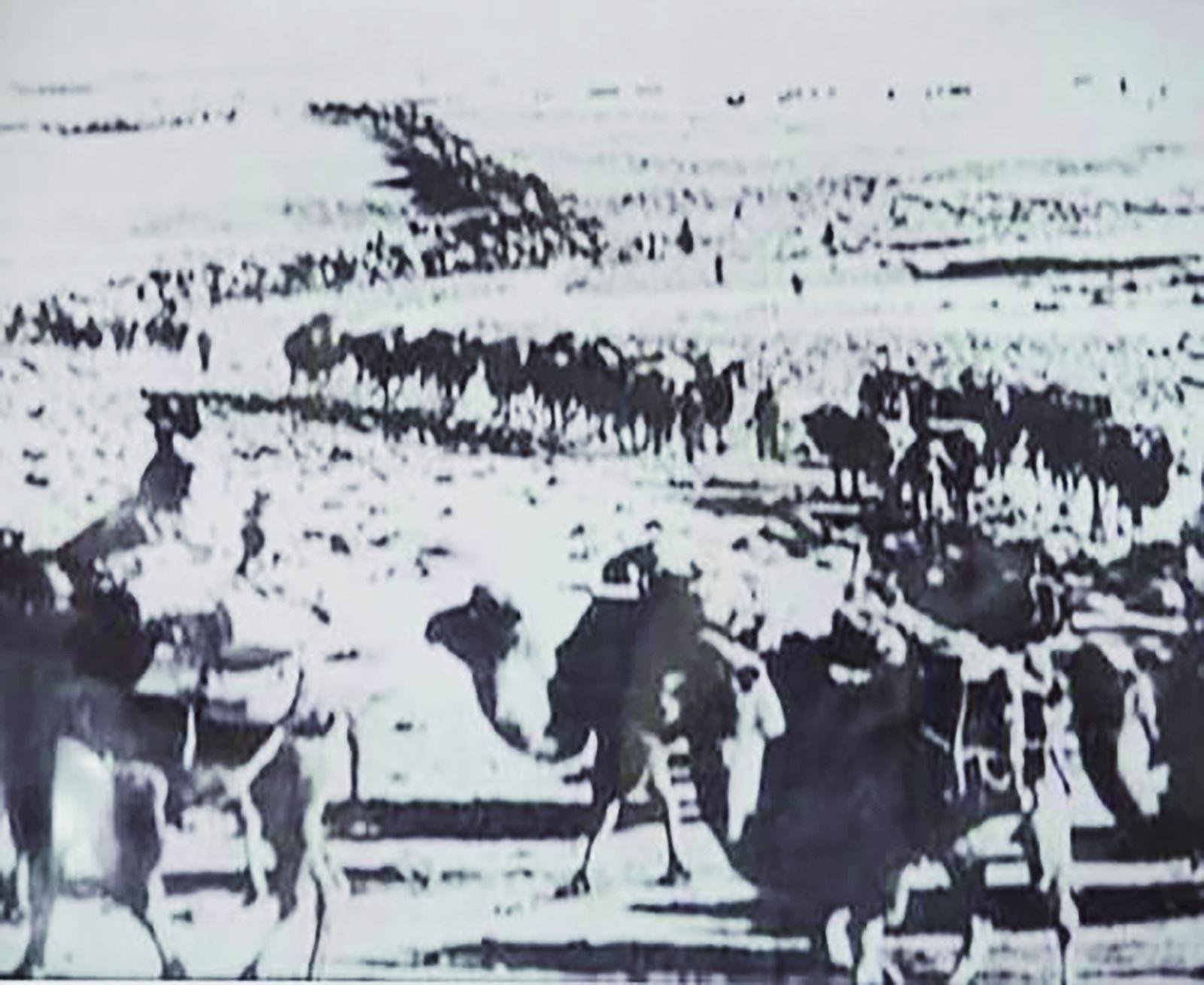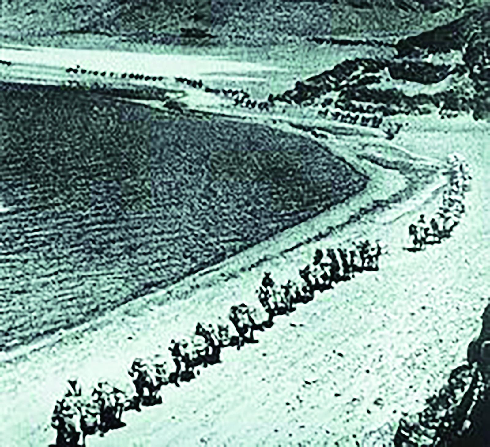 這次重要的探路任務(wù),落在西藏運(yùn)輸總隊(duì)副政委任啟明的身上。1953年11月,他挑選十幾名戰(zhàn)士和駝工及2名測(cè)繪技術(shù)員、1名翻譯,共20多人,牽著駝馬,架著兩輛木輪大車,從香日德出發(fā),沿著柴達(dá)木盆地南麓前進(jìn)。
