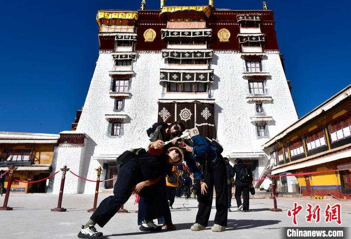 圖為11月1日,來(lái)自四川的信眾在布達(dá)拉宮拍照留念。中新社記者 李林 攝
