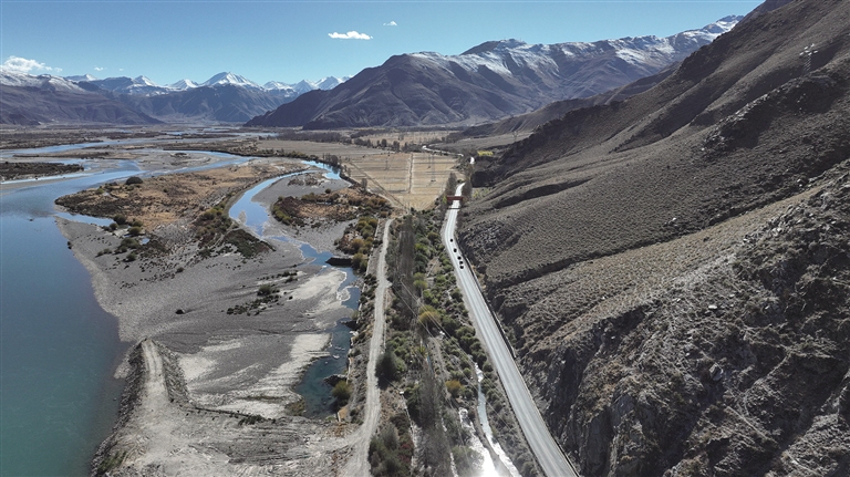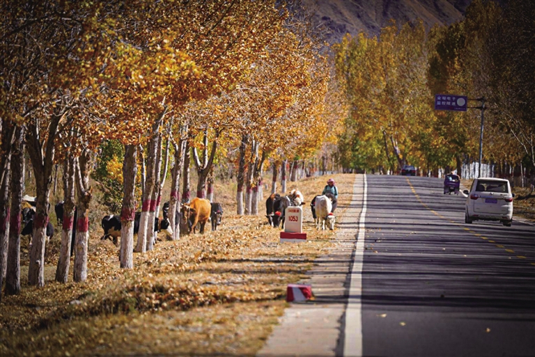 G318被稱為“中國(guó)景觀大道”,沿途壯麗絕美的風(fēng)光令人心醉神迷。恰風(fēng)和日麗的一天,記者一行驅(qū)車前往G318曲水段與達(dá)孜段。一路層林盡染,落葉飄飛,如詩如畫,美不勝收。