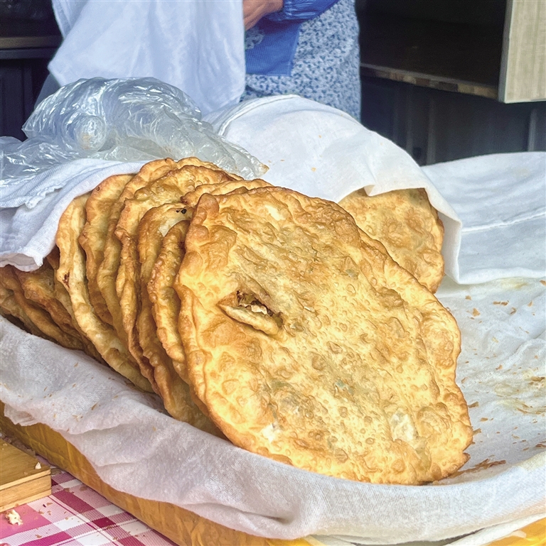 如果你擔心一份蓋澆飯吃不飽,可以提前在位于同一條巷子的“爺爺奶奶肉餅”買上一個肉餅。這家店同樣是城關區(qū)的老店,深受拉薩群眾的喜愛。肉餅脆而不油,面粉和肉餡的香氣完美融合。建議上午12:00前去,這家店鋪通常賣完肉餅就早早關門啦!