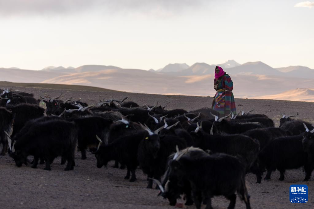 措勤縣紫絨山羊原種場(chǎng)的一位牧工在照看優(yōu)質(zhì)種羊群(11月20日攝)。新華社記者 姜帆 攝