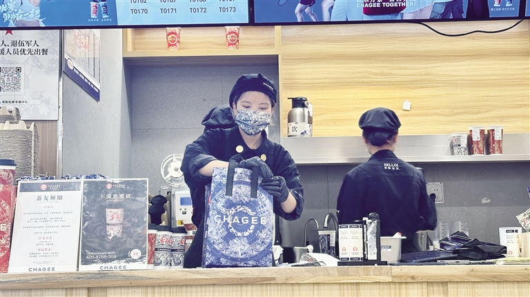 “你好,我要一杯奧利奧奶茶,打包帶走?!苯眨浾邅?lái)到拉薩市城關(guān)區(qū)納金路上的一家奶茶店,只見(jiàn)柜臺(tái)上擺放了一排制作完成等待取用的飲品,不少顧客正在等待排隊(duì)點(diǎn)單,隨著新訂單不斷進(jìn)入,服務(wù)員忙得不可開(kāi)交?!岸焓亲钸m合喝奶茶的季節(jié),拉薩早晚溫差大,冷的時(shí)候把一杯熱熱的奶茶捧在手里,再喝上一口,手心、身體都是熱乎乎的?!崩_市民阮女士笑著說(shuō),“最近,我經(jīng)常過(guò)來(lái)買奶茶,也經(jīng)常給身邊的同事朋友帶奶茶,大家都挺愛(ài)喝的?!?/p>