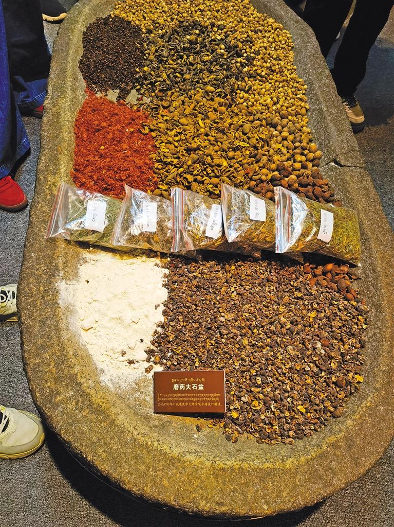 在自治區(qū)藏醫(yī)院展館中,各式各樣的藏藥材整齊排列,從珍貴的雪蓮花、紅景天、甘青青蘭到常見的藏青果、芫根、甘草應(yīng)有盡有,每一種藥材都承載著藏醫(yī)對(duì)自然的敬畏。“這些藥材不僅形態(tài)各異,而且藥效獨(dú)特,是藏醫(yī)院治療疾病、保健養(yǎng)生的寶貴資源?!贝稳实录f。