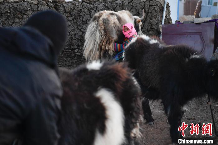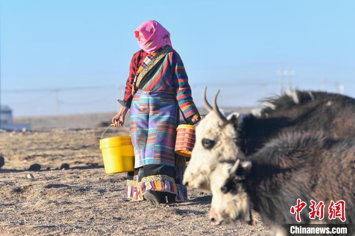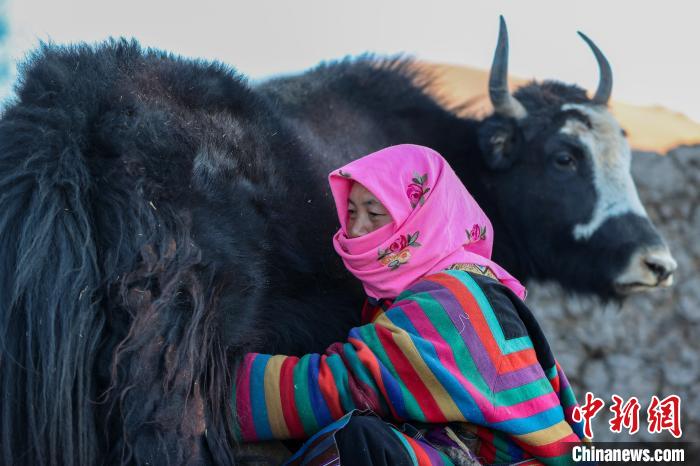 12月12日,西藏自治區(qū)那曲市安多縣帕那鎮(zhèn)牧民土巴卓瑪準(zhǔn)備去擠牦牛奶。中新社記者 貢嘎來(lái)松 攝