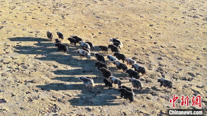 12月12日,西藏自治區(qū)那曲市安多縣帕那鎮(zhèn)牧民土巴卓瑪家的牦牛。(無(wú)人機(jī)照片)中新社記者 薛蒂 攝