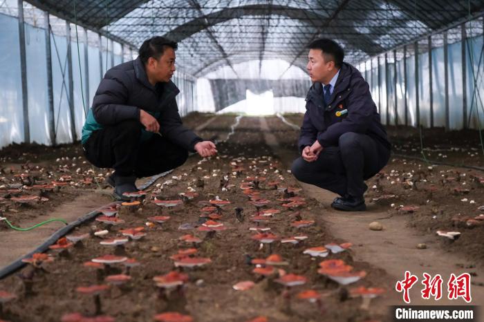 圖為12月10日,尼瑪在農(nóng)場大棚內(nèi)檢查靈芝風干情況。記者 江飛波 攝