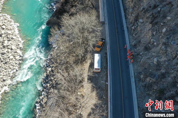 12月16日,西藏自治區(qū)林芝公路事業(yè)發(fā)展和應(yīng)急保障中心(工布江達(dá)養(yǎng)護(hù)段)道路養(yǎng)護(hù)工人及時清除川藏公路上的落石,保障道路暢通。該養(yǎng)護(hù)段擔(dān)負(fù)著川藏公路沿線工布江達(dá)縣路段的養(yǎng)護(hù)管理、應(yīng)急搶險等工作,包括路面修補(bǔ)、清理邊溝、維護(hù)交通安全設(shè)施等日常養(yǎng)護(hù)工作。圖為道路養(yǎng)護(hù)工人在公路上巡護(hù)。(無人機(jī)照片)中新社記者 貢嘎來松 攝