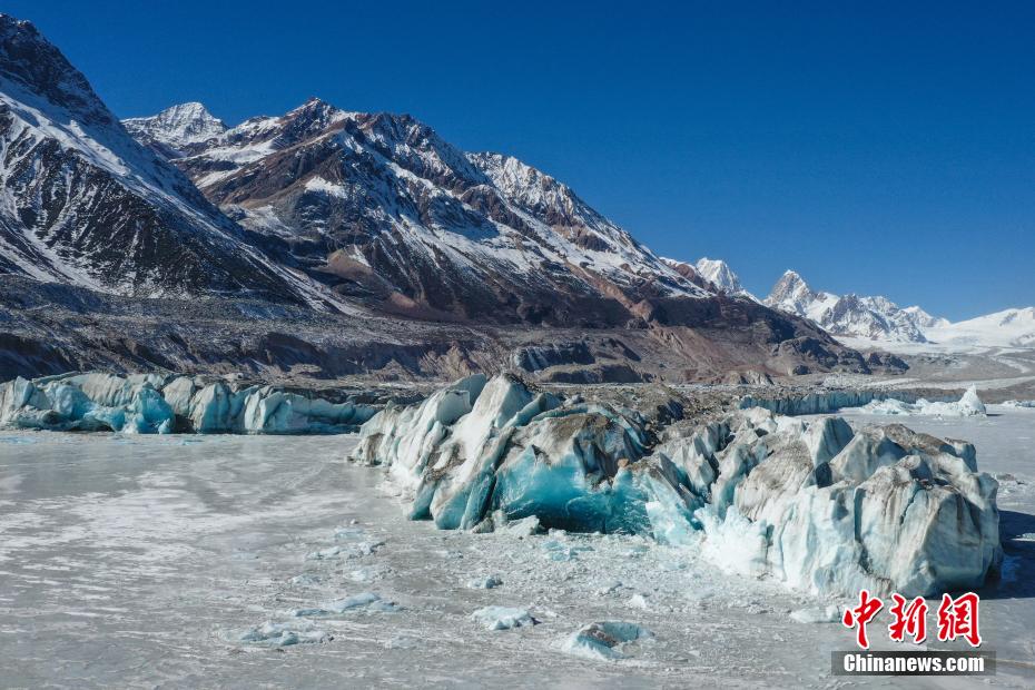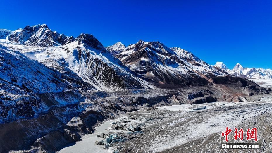 12月19日,西藏自治區(qū)昌都市八宿縣然烏鎮(zhèn)西南部來古村來古冰川風光狀美。來古冰川是多個冰川的統(tǒng)稱,其外觀形態(tài)獨特壯美,屬于海洋性冰川。(無人機照片)中新社記者 貢嘎來松 攝