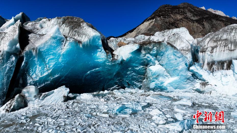 12月19日,西藏自治區(qū)昌都市八宿縣然烏鎮(zhèn)西南部來古村來古冰川風光狀美。來古冰川是多個冰川的統(tǒng)稱,其外觀形態(tài)獨特壯美,屬于海洋性冰川。中新社記者 貢嘎來松 攝
