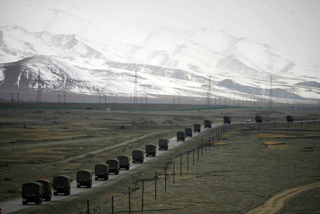 2014年9月24日,運(yùn)輸車隊行進(jìn)在青藏公路青海玉珠峰下。