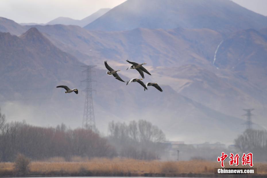12月29日,冬日早晨,拉薩美如畫。拉薩河被晨光染成金色,河水靜靜流淌。西藏自治區(qū)拉薩市的拉魯濕地國家級自然保護區(qū)內,候鳥歡快,忙著覓食、嬉戲。遠處,布達拉宮與拉魯濕地相互映襯,構成了一幅絕美畫卷。圖為12月29日,在拉魯濕地越冬的候鳥成群結隊。貢確 攝