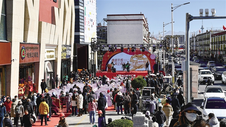 1月1日,拉薩神力時代廣場歷經(jīng)7個月左右的裝修升級后,正式恢復營業(yè),首日銷售額突破300萬元,客流量高達4.26萬人次。開業(yè)儀式現(xiàn)場人頭攢動、熱鬧非凡,不少市民早早來到商場外,期待一睹新面貌。“我家就在附近,以前家里人很愛逛這個商場,相信這次裝修升級后,會帶給我們?nèi)碌南M體驗。”拉薩市民貢先生說。