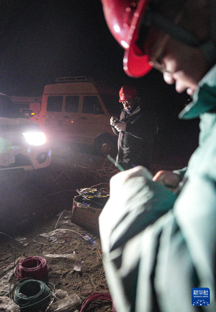 1月7日,在定日縣長所鄉(xiāng)集中安置點,工作人員在保障電力供應(yīng)。新華社記者 晉美多吉 攝