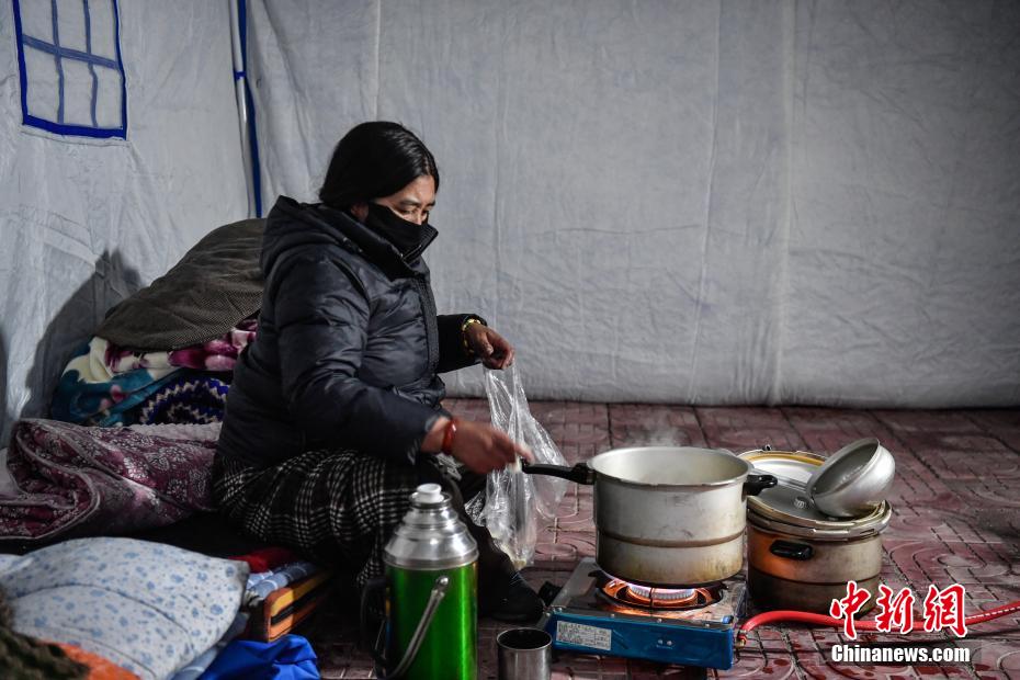 1月7日9時(shí)5分,西藏自治區(qū)日喀則市定日縣措果鄉(xiāng)附近(東經(jīng)87.45度,北緯28.50度)發(fā)生6.8級(jí)地震。日喀則市官方介紹,經(jīng)初步排查,截至當(dāng)日15時(shí),地震共造成95人遇難,130人受傷,房屋損毀正在統(tǒng)計(jì)中。圖為日喀則拉孜縣境內(nèi)的村民在臨時(shí)搭建的帳篷里做飯。中新社記者 貢嘎來松 攝