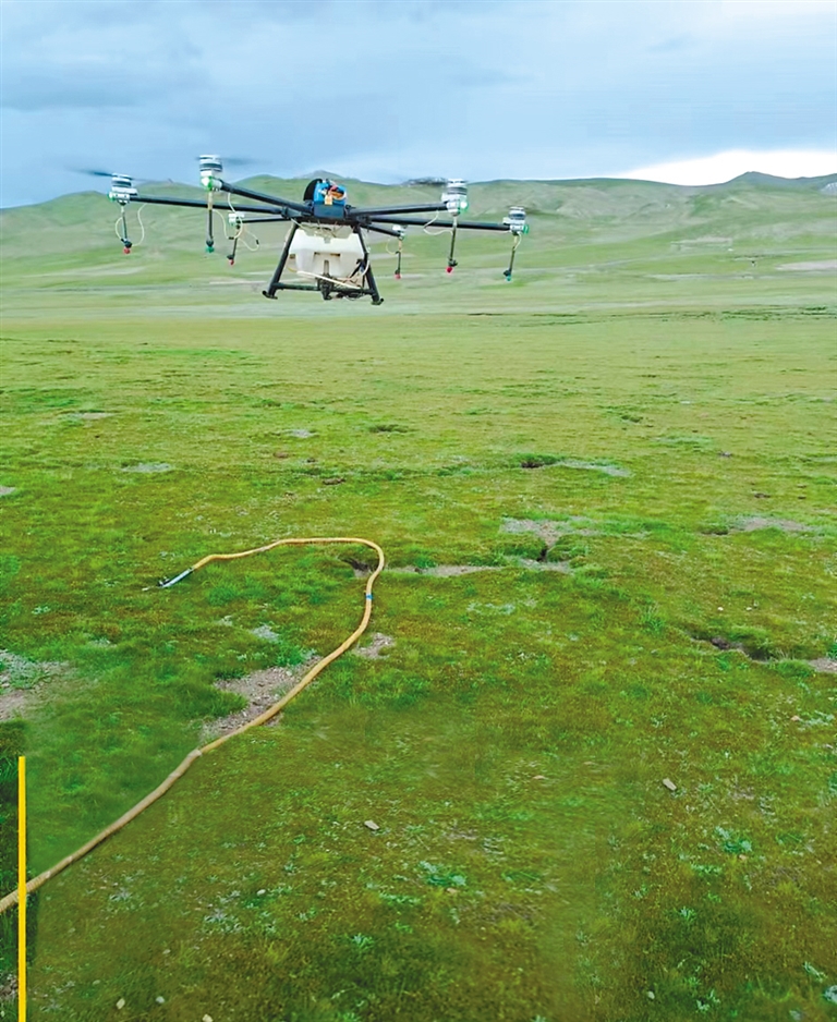 據(jù)介紹,高原毛蟲是西藏高原牧區(qū)的重要害蟲,多發(fā)生在海拔3000至5000米的高山草原,對(duì)莎草科、禾本科、豆科、蓼科、薔薇科等各類牧草危害嚴(yán)重,嚴(yán)重影響牧草生長(zhǎng)和畜牧業(yè)的發(fā)展。在項(xiàng)目實(shí)施過程中,項(xiàng)目組確定使用植保無(wú)人機(jī)噴藥,防治高原毛蟲。