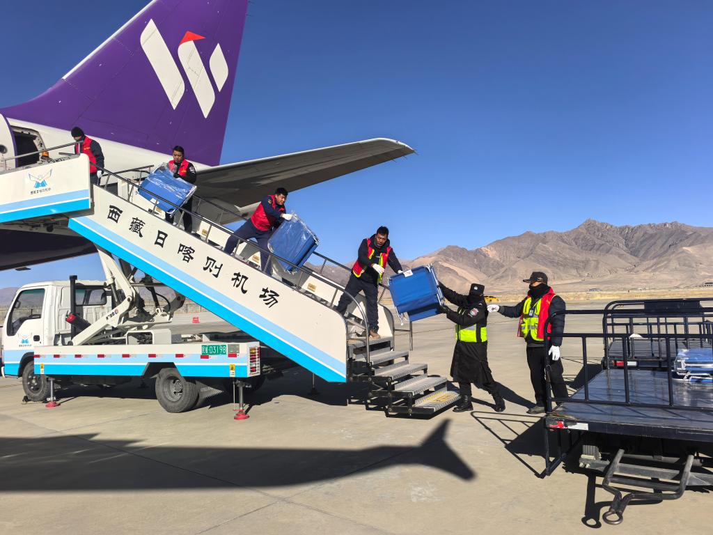 1月9日上午,救援物資抵達西藏日喀則機場。新華社發(fā)